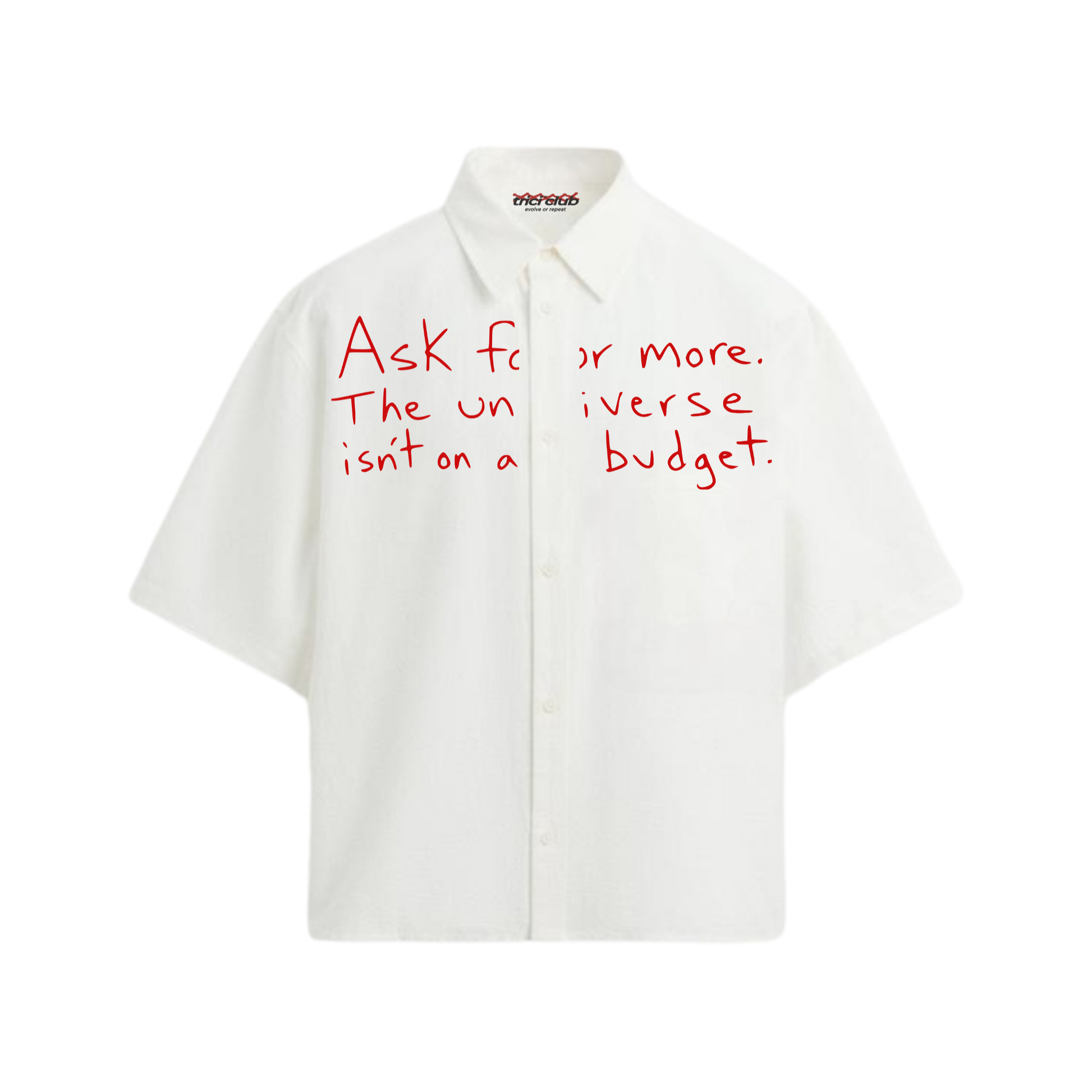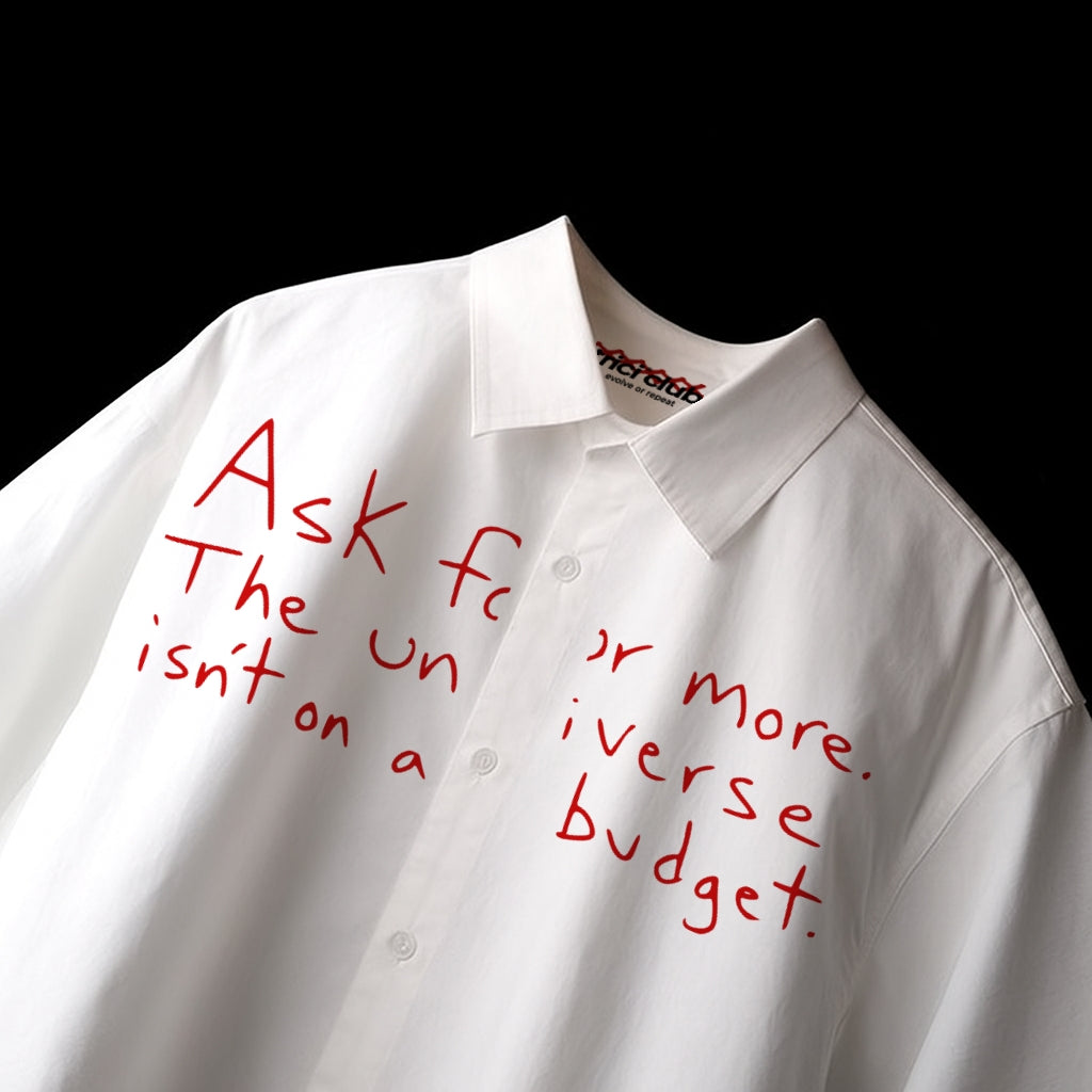 - FRONT HANDWRITTEN QUOTE: “Ask for more. The universe isn’t on a budget.”
